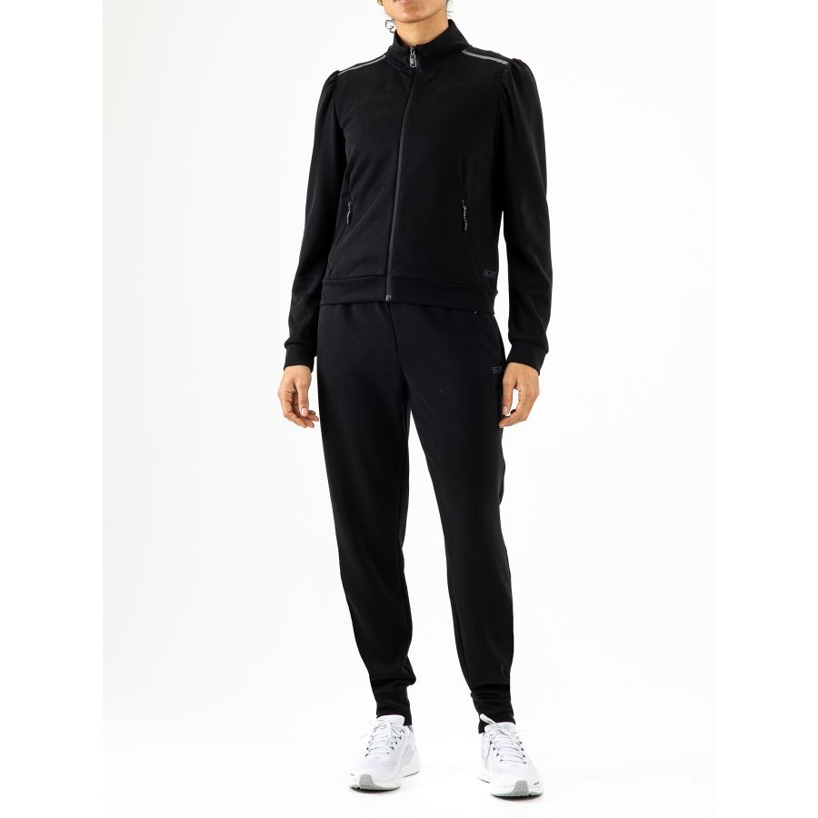Deze multisportbroek voor dames valt op door het speciale materiaal waarvan hij gemaakt is. Dat materiaal bestaat voor de helft uit modal, dat zijdezacht aanvoelt. Ons zwarte trainingsjack Rachelle is van hetzelfde duurzame materiaal gemaakt, zodat je de twee perfect kunt combineren.